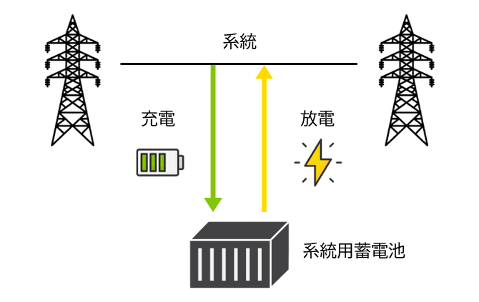 系統用蓄電池は、 「電力網(電線)につながる、大きな電池」です。
