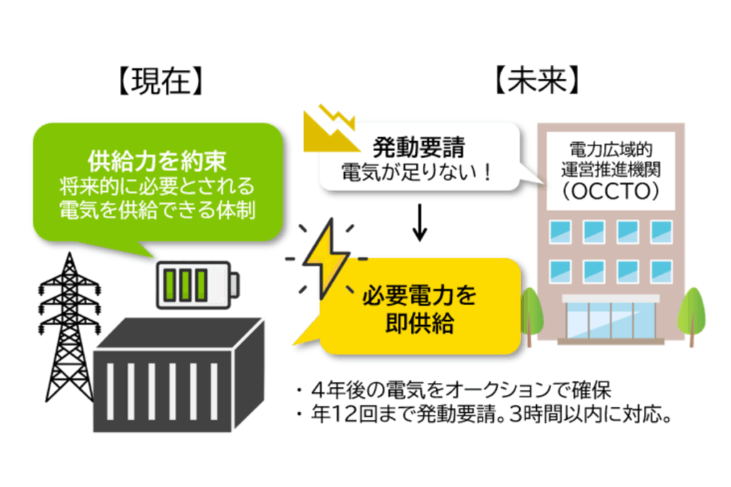 実際に電気を出す場面は年に数回(最大12回程度)、そのための「待機料」のような収益が得られます。