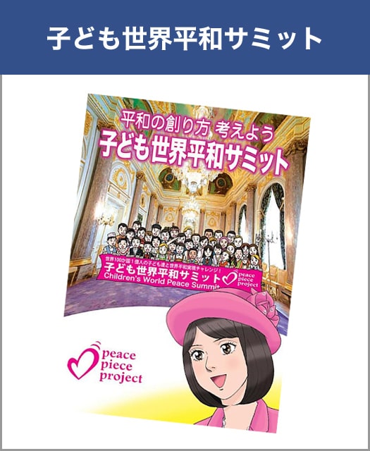 平和への思いから、外務省後援で「子ども世界平和サミット®」(第1~5回)を主催するなど、子ども達が安心して暮らせる社会の実現を目指している。