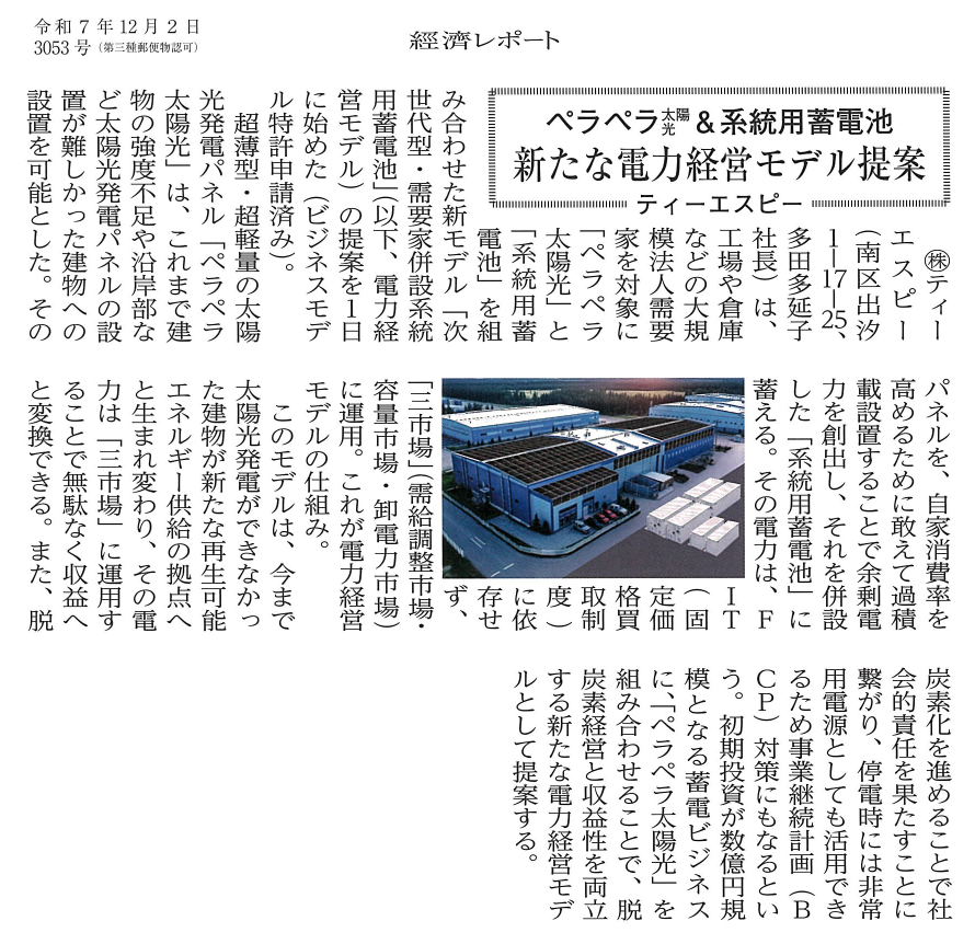 ペラペラ太陽光と系統用蓄電池を組み合わせた新たな電力経営モデルとして、当社の取り組みが紹介されました。
